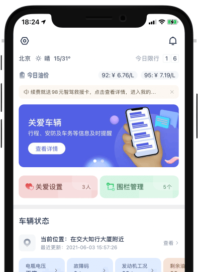 连接智驾车载硬件,为车主提供极致的车联网服务体验。创新“汽车”与“家庭”的互联概念,实现家人之间的行驶数据共享,让你不再担心家人驾车出行。